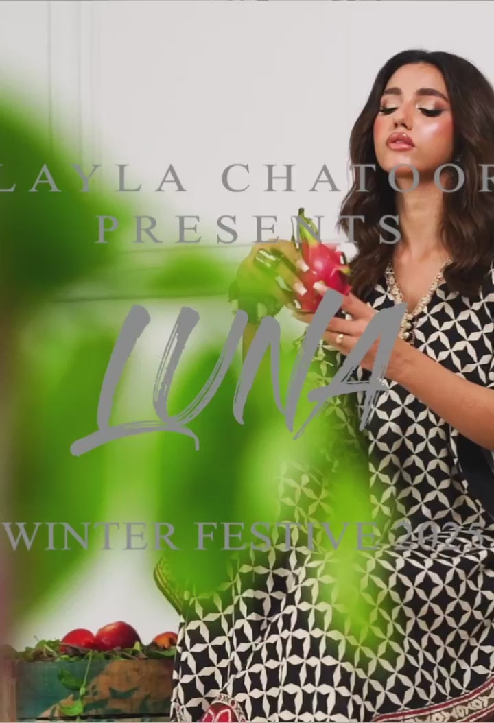 Make a powerful yet graceful impression with Mia, a monochrome pret wear kaftan that blends bold design with relaxed sophistication. Featuring an eye-catching mix of black and white floral and geometric prints, this piece stands out for its striking contrast and timeless appeal. The sleek buttoned neckline adds a refined touch, enhancing the kaftan’s modern silhouette.